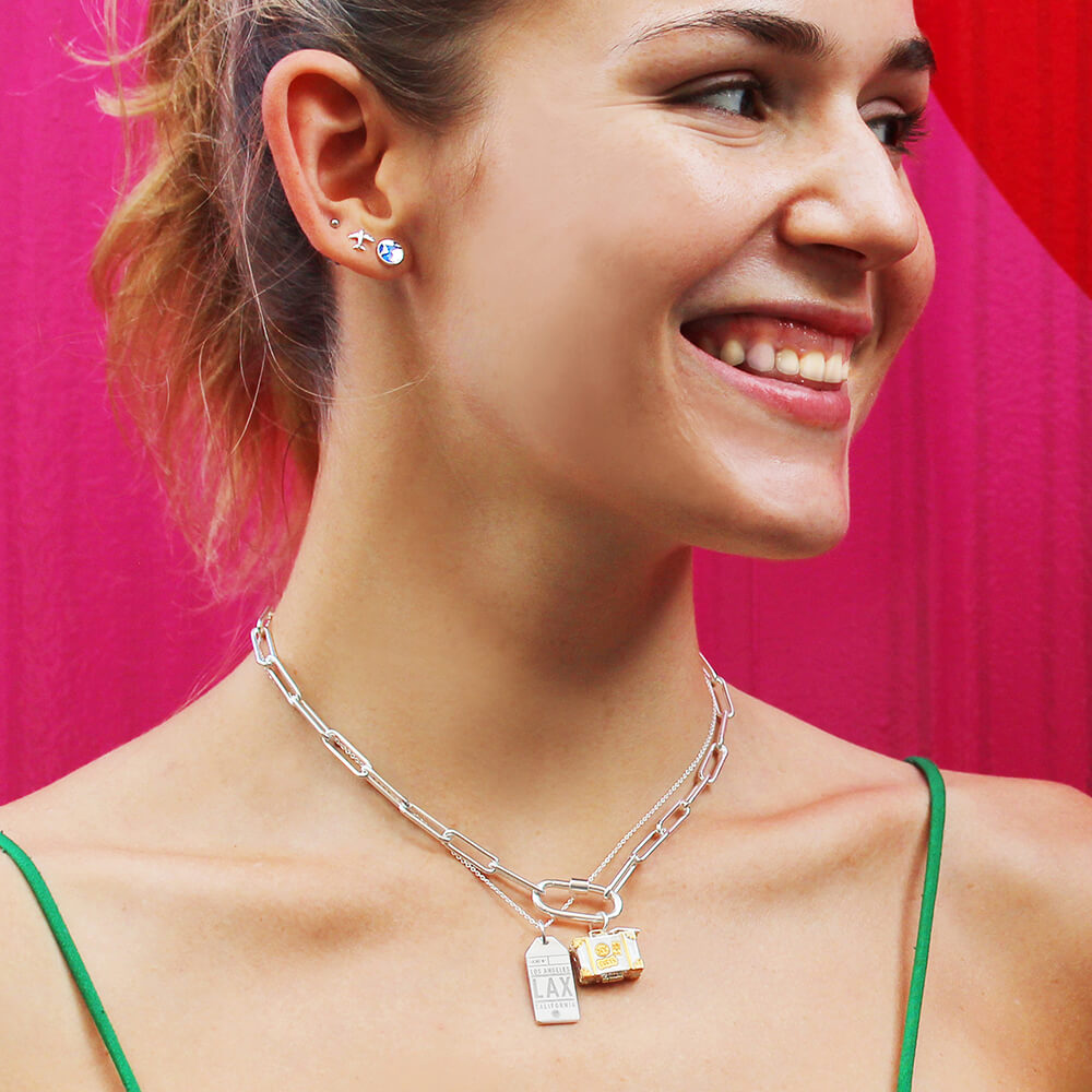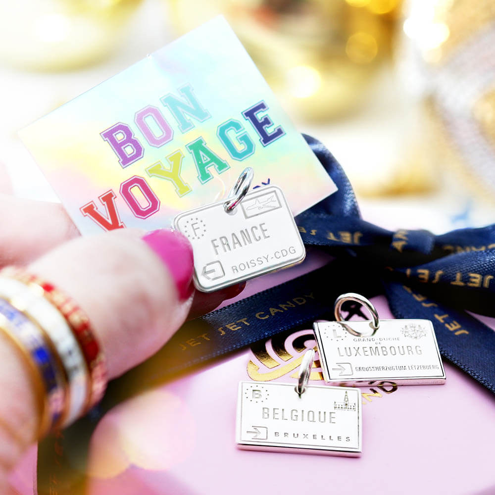 Inspired by actual airport luggage tags. | Our most popular city charms in mini. | Inspired by actual stamps in your passport book. | Our most popular country charms in mini. | Real-world objects, reimagined in mini 3D. | Mini versions of our most-loved charms. | Your details on charms inspired by the real thing. | The sailor's alphabet, reimagined in charm form. | Mini versions of all our nautical flags. | Iconic souvenirs of the parks you love. |