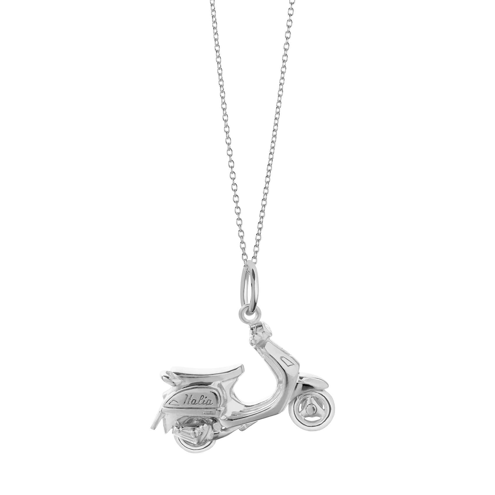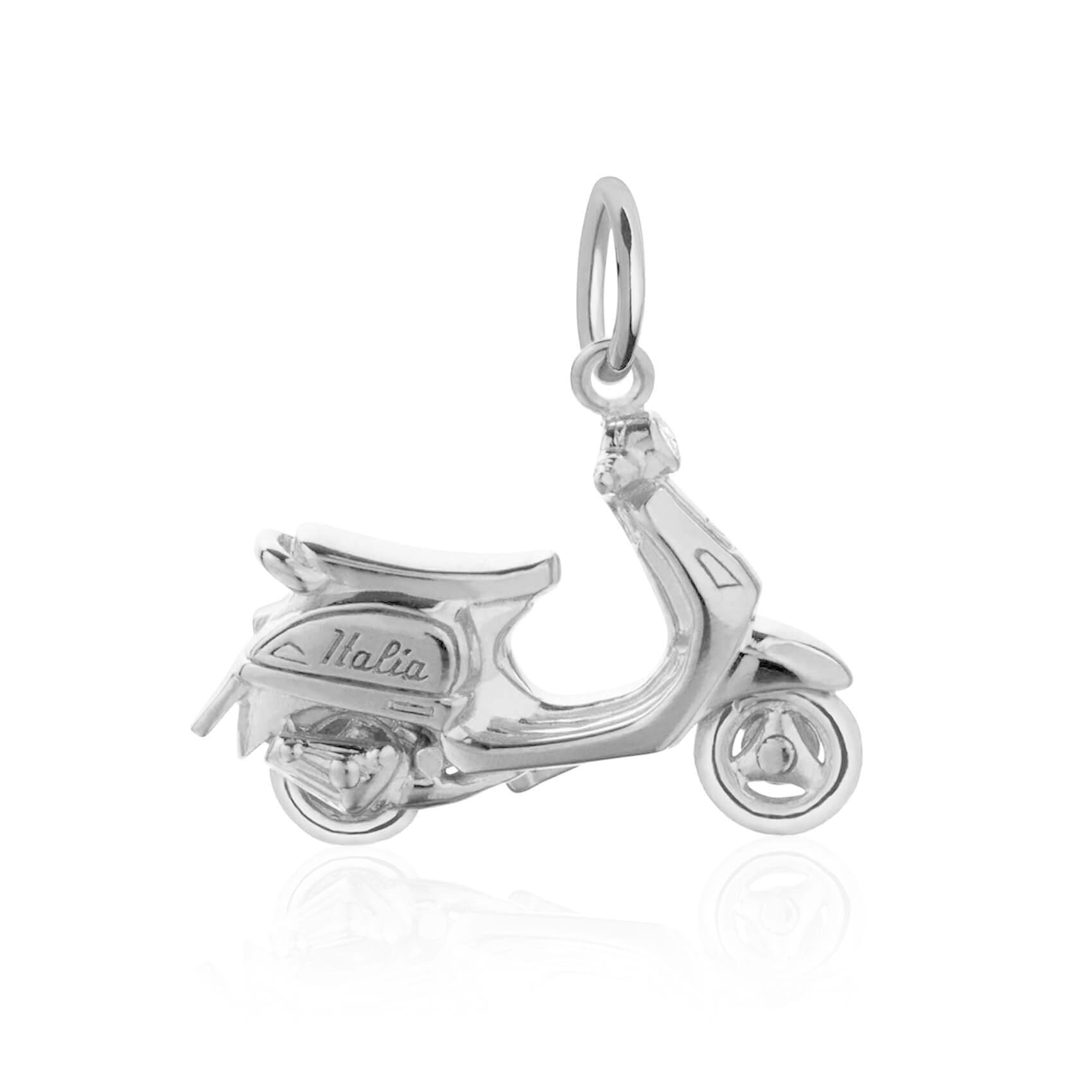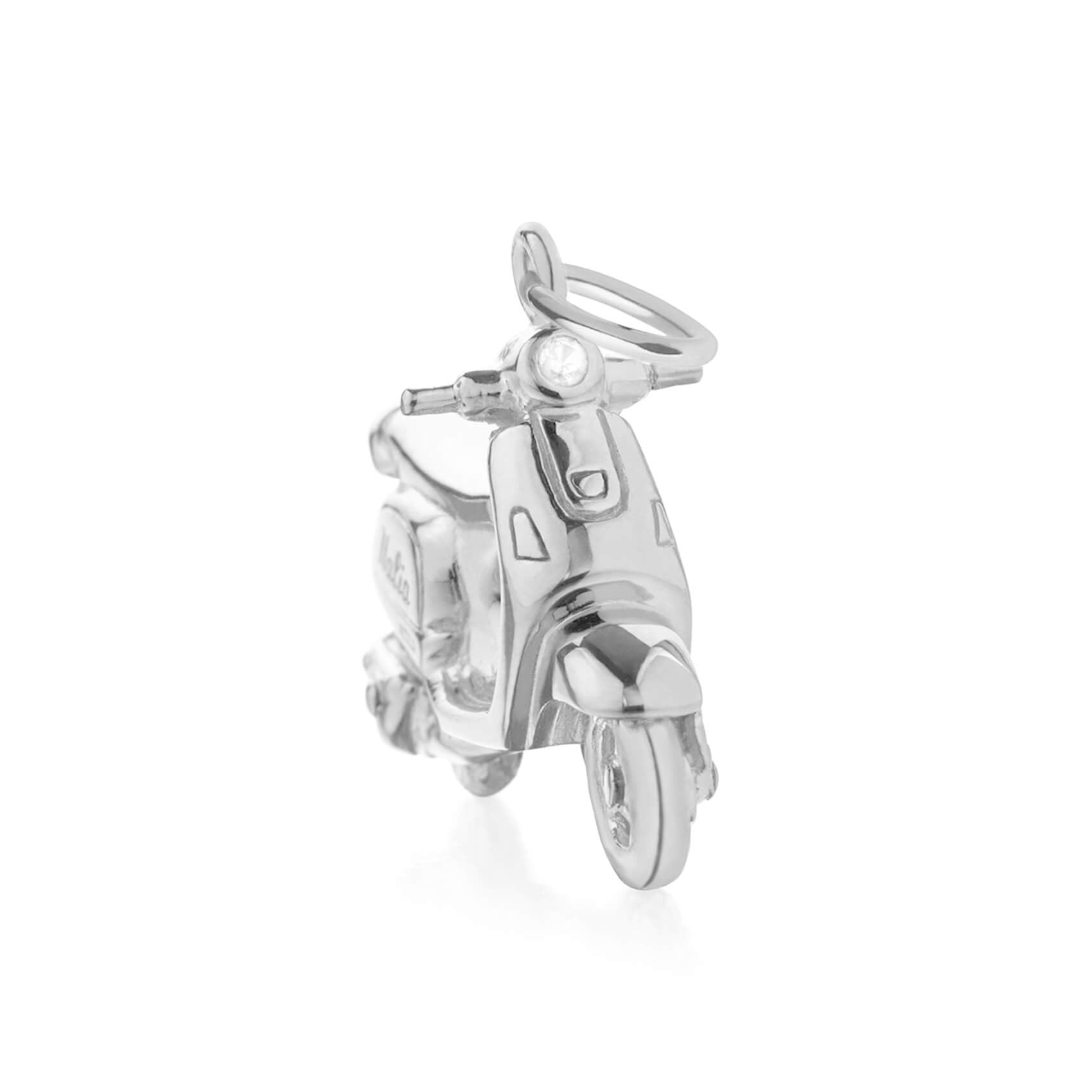 Take your own Roman Holiday on the world's sexiest scooter: Vespa! It's Italian for style. Invented 1946 and totally timeless, your Italian Scooter Charm comes complete with spinning wheels and a diamond headlight for night rides.