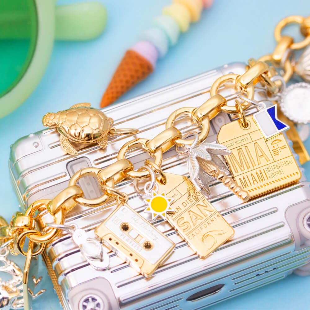 Inspired by actual airport luggage tags. | Our most popular city charms in mini. | Inspired by actual stamps in your passport book. | Our most popular country charms in mini. | Real-world objects, reimagined in mini 3D. | Mini versions of our most-loved charms. | Your details on charms inspired by the real thing. | The sailor's alphabet, reimagined in charm form. | Mini versions of all our nautical flags. | Iconic souvenirs of the parks you love. |
